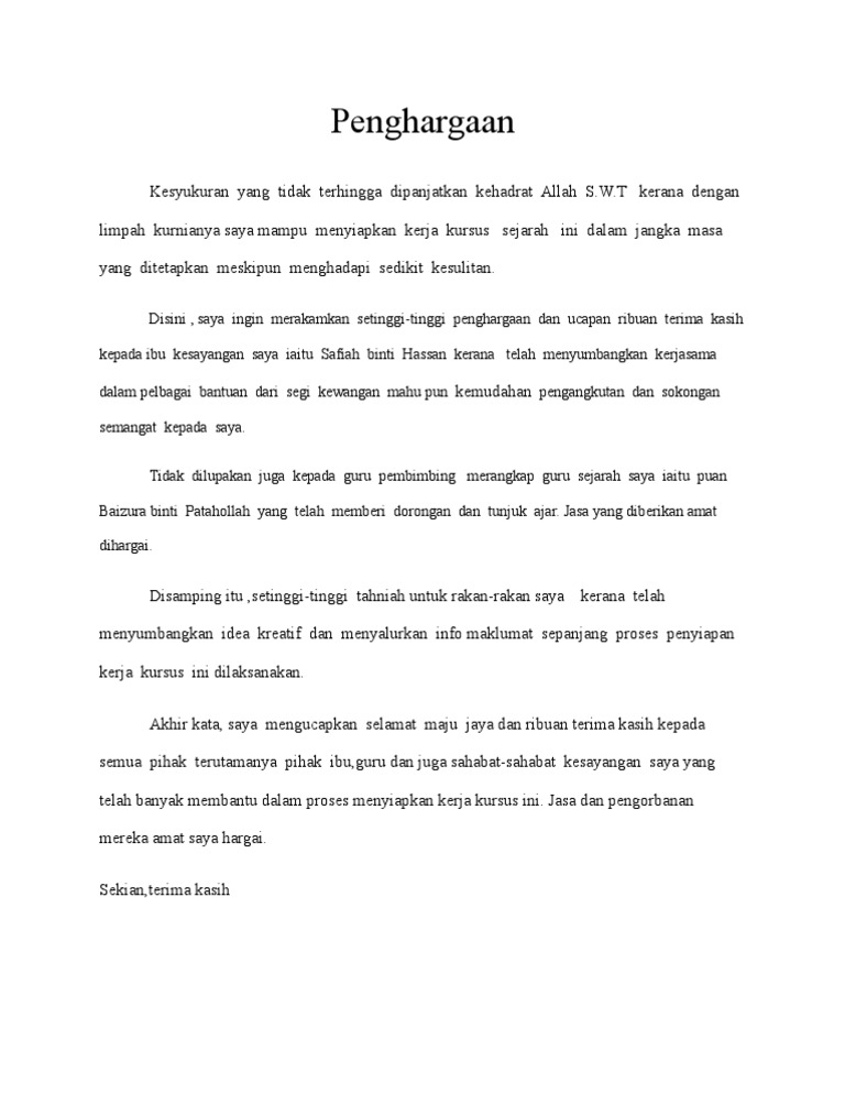 Contoh Ayat Penghargaan