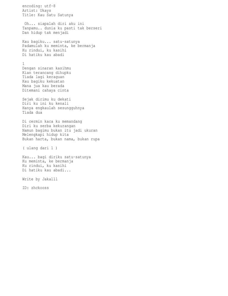 Ukays Kau Satu Satunya Lyrics Lyrics My