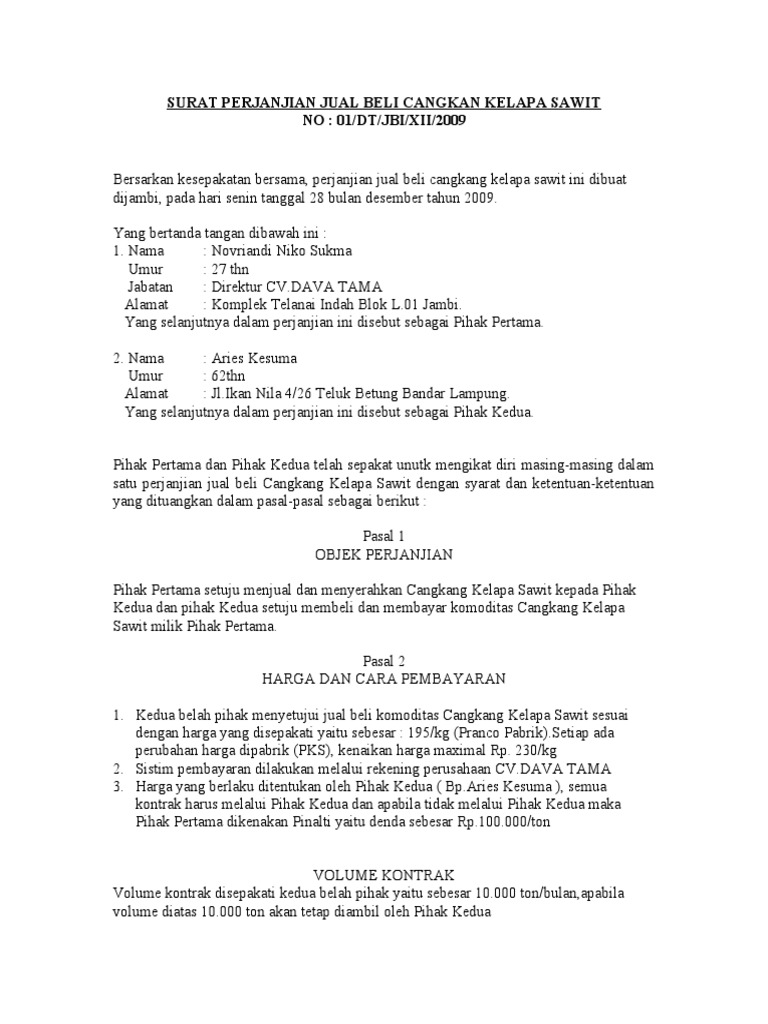 Surat Perjanjian Jual Beli Cangkan Kelapa Sawit