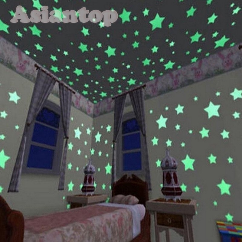 Bayar Di Tempat Pelekat Dinding 100pcs 3d Star Stereo Sticker Smd Fluorescent Wall Sticker Shopee Malaysia