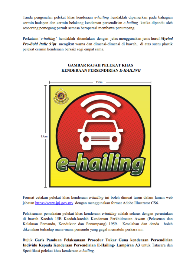 Kenderaan Persendirian E Hailing Perlu Menampal Pelekat Khas E Hailing Mulai Sekarang