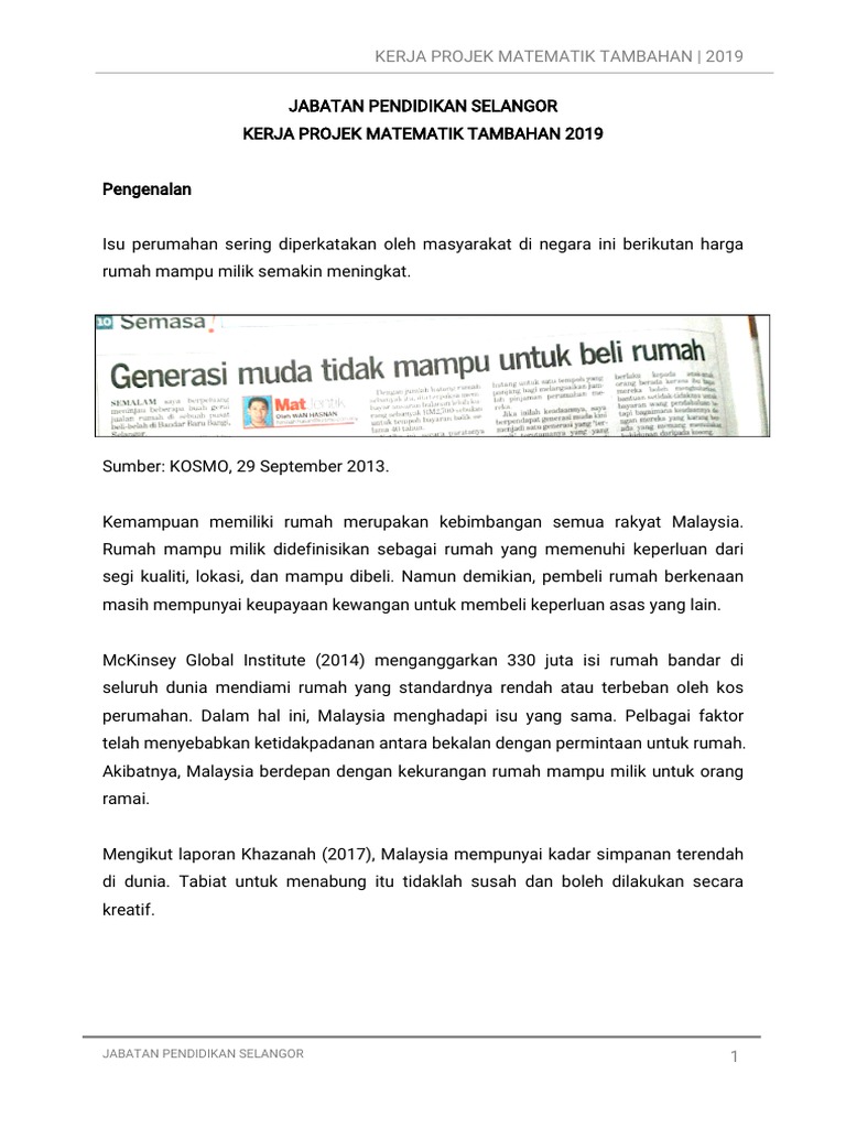 Kerja Projek Matematik Tambahan 2018 Selangor