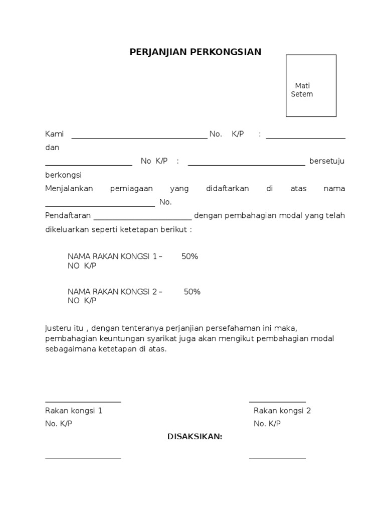Contoh Surat Perjanjian Perkongsian Perniagaan Aku Dan Dunia Kita With Images Surat Pdf Templates