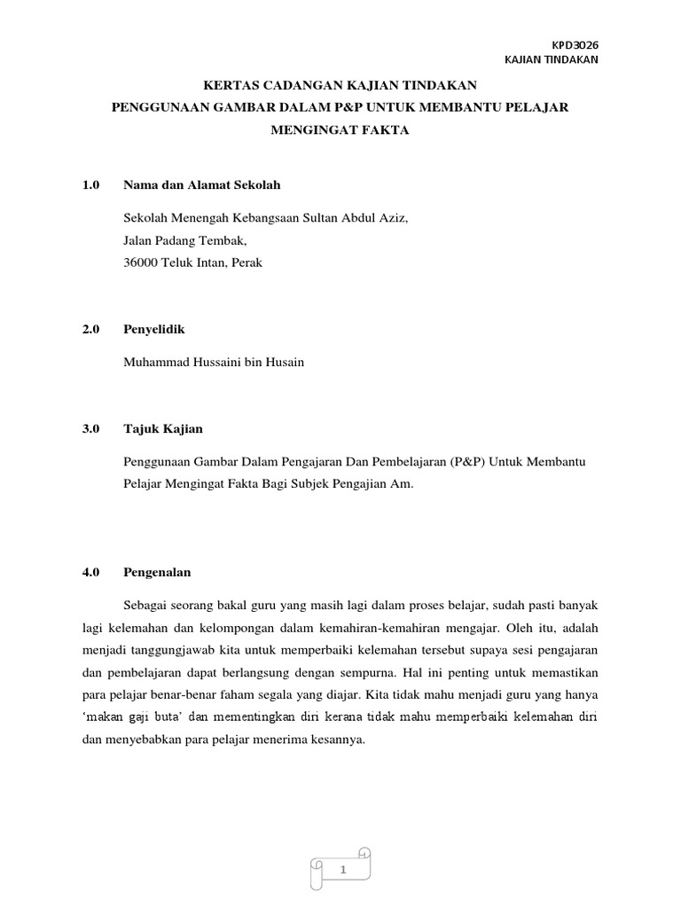Kertas Cadangan Kajian Tindakan 3 Kandungan Dalam Kertas Cadangan Jawapan Yang Mereka Berikan Mudah Sahaja Iaitu Cikgu Tentukan Tema Isu Keprihatinan Kajian Pdf Document