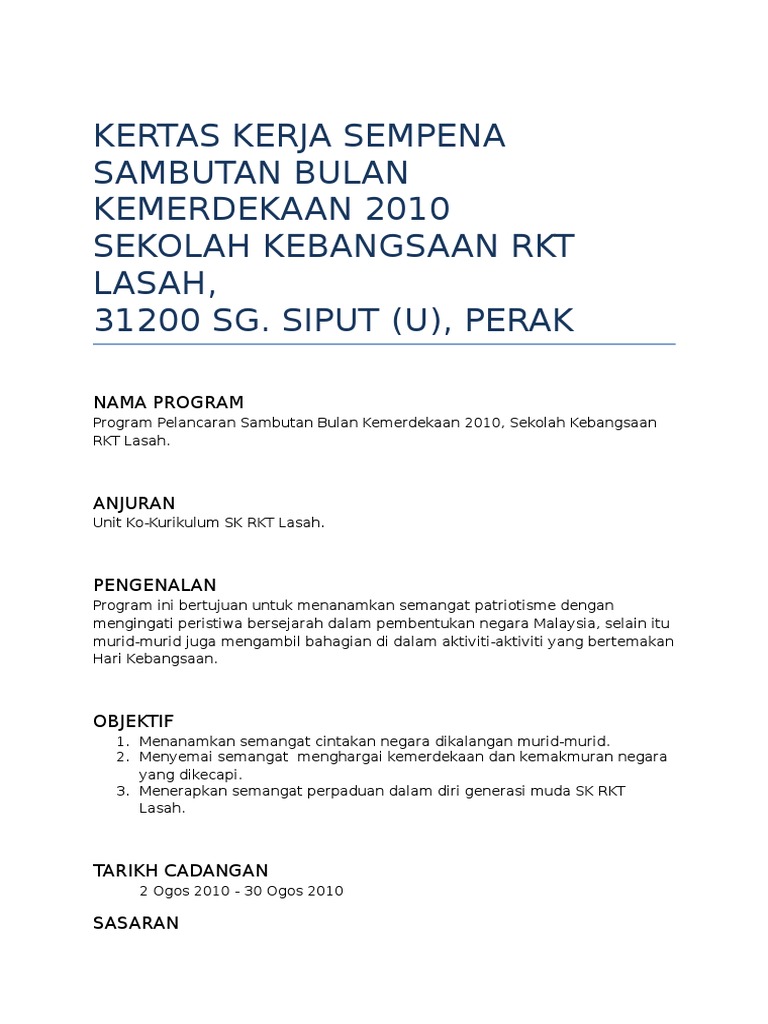 Kertas Candangan Sambutan Kemerdekaan Peringkat Sekolah Docx