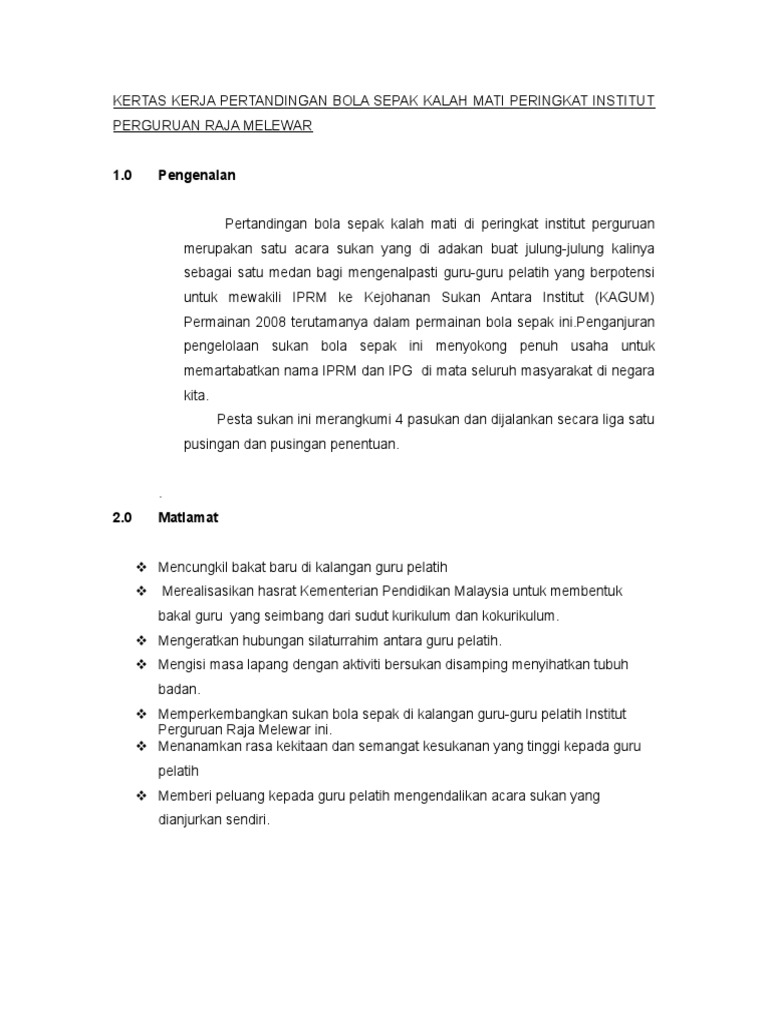 Kertas Kerja Penganjuran Kejohanan Bola Sepak