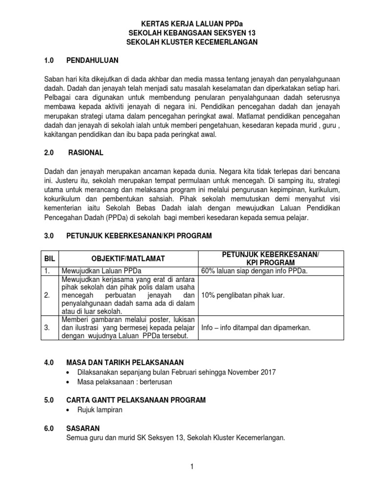 Kertas Kerja Antidadah Sk Wira Pages 1 6 Text Version Anyflip