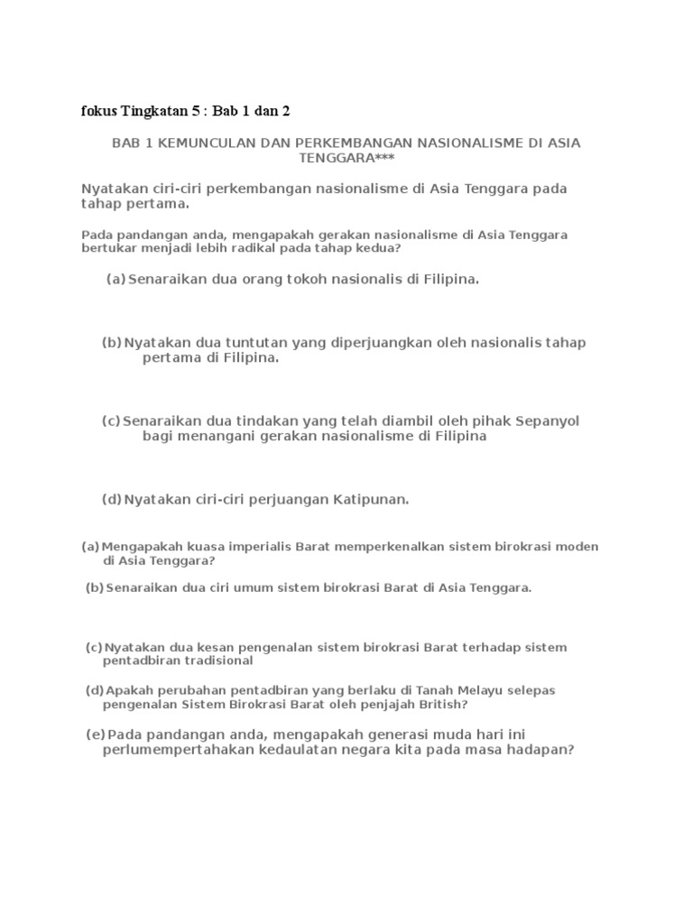 Nota Lengkap Kemunculan Dan Perkembangan Nasionalisme Di Asia Tenggara Spm Bab 1 Pendidikanmalaysia Com