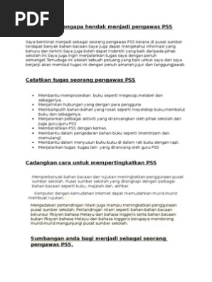 Beri Sebab Mengapa Hendak Menjadi Pengawas Pss