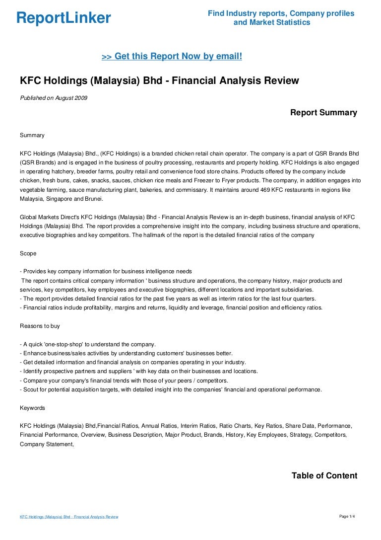 Kfc Holdings Malaysia Bhd Financial Analysis Review
