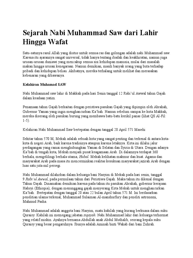 Doc Kisah Nabi Muhammad Saw Dari Lahir Hingga Wafat Docx Riza Satria Academia Edu